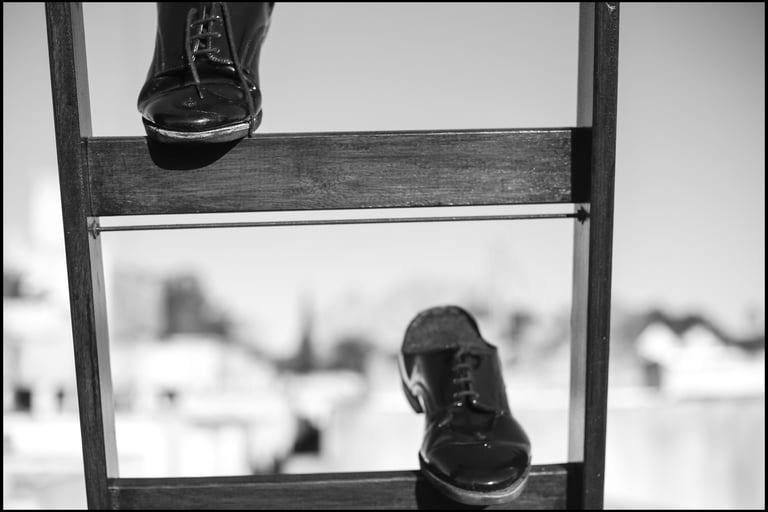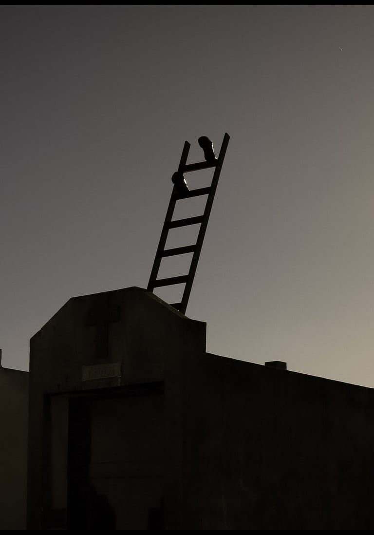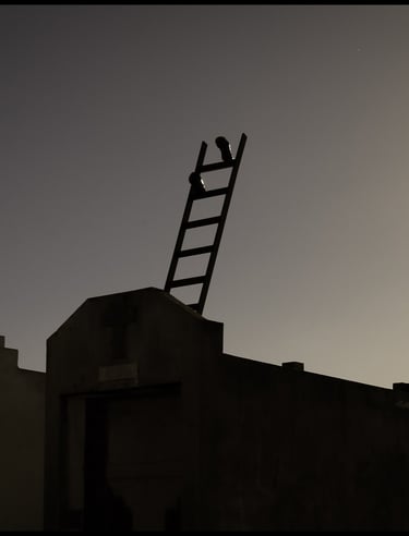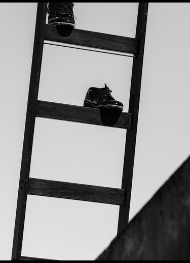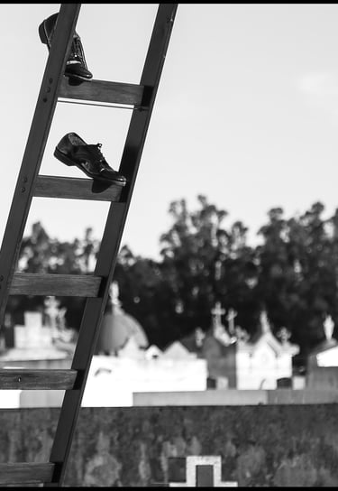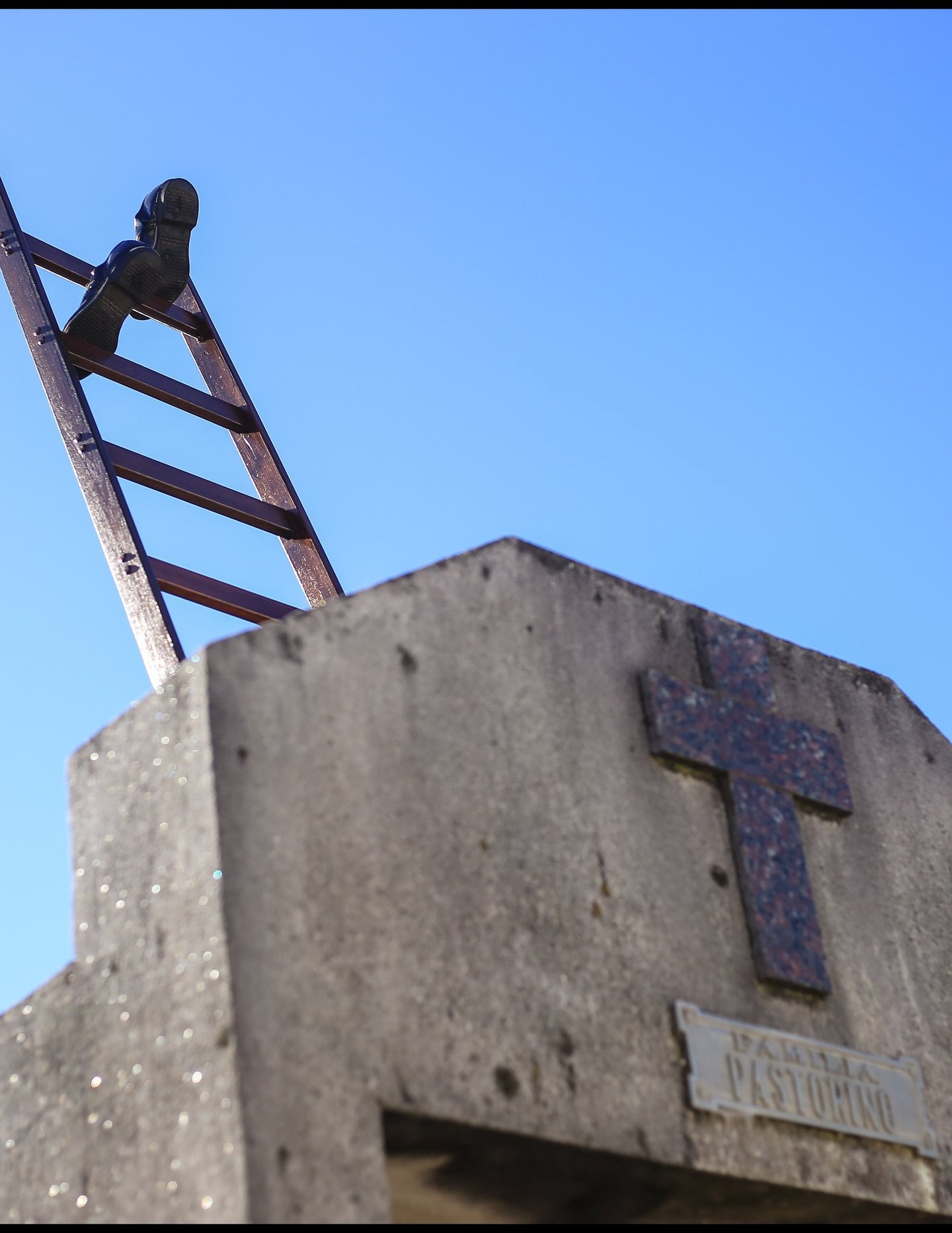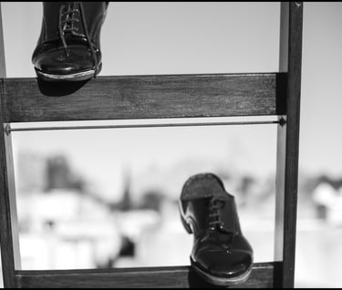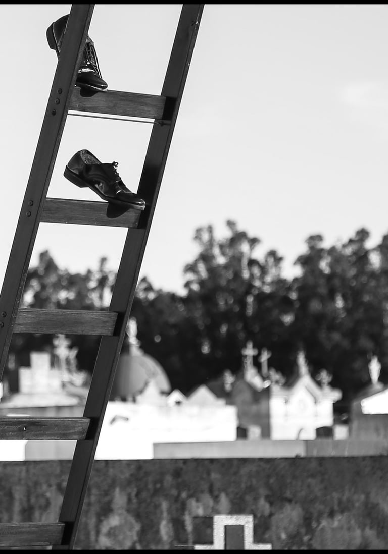 Obra realizada en madera y con zapatos reales, usados por su abuelo “Tola”. Interpela la desmaterialización de los cuerpos sensibles, en el último paso hacia otra dimensión.