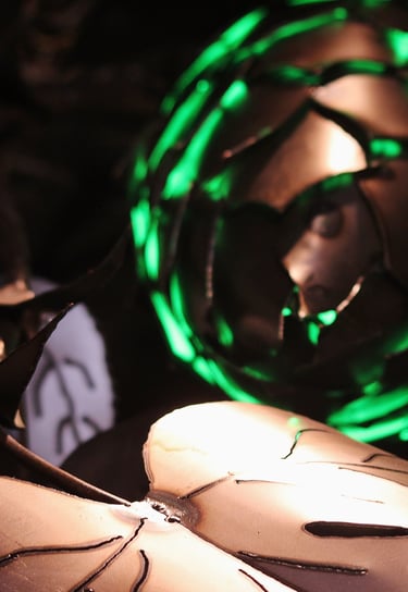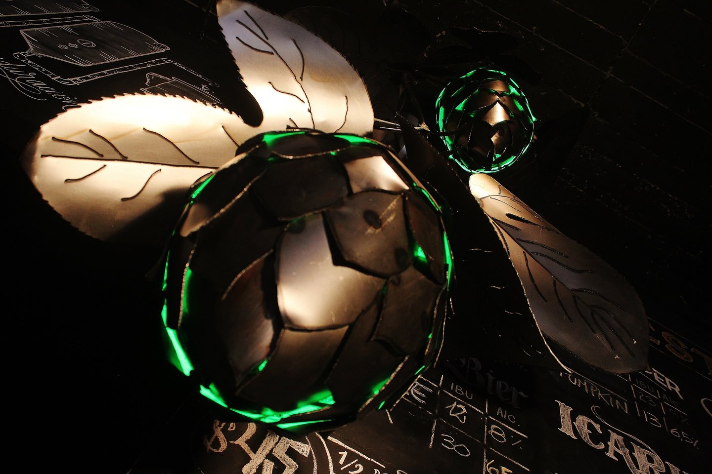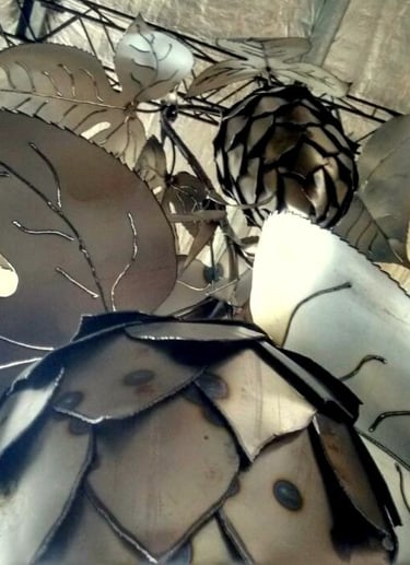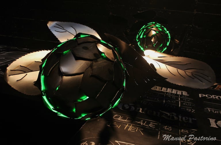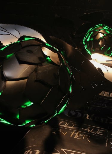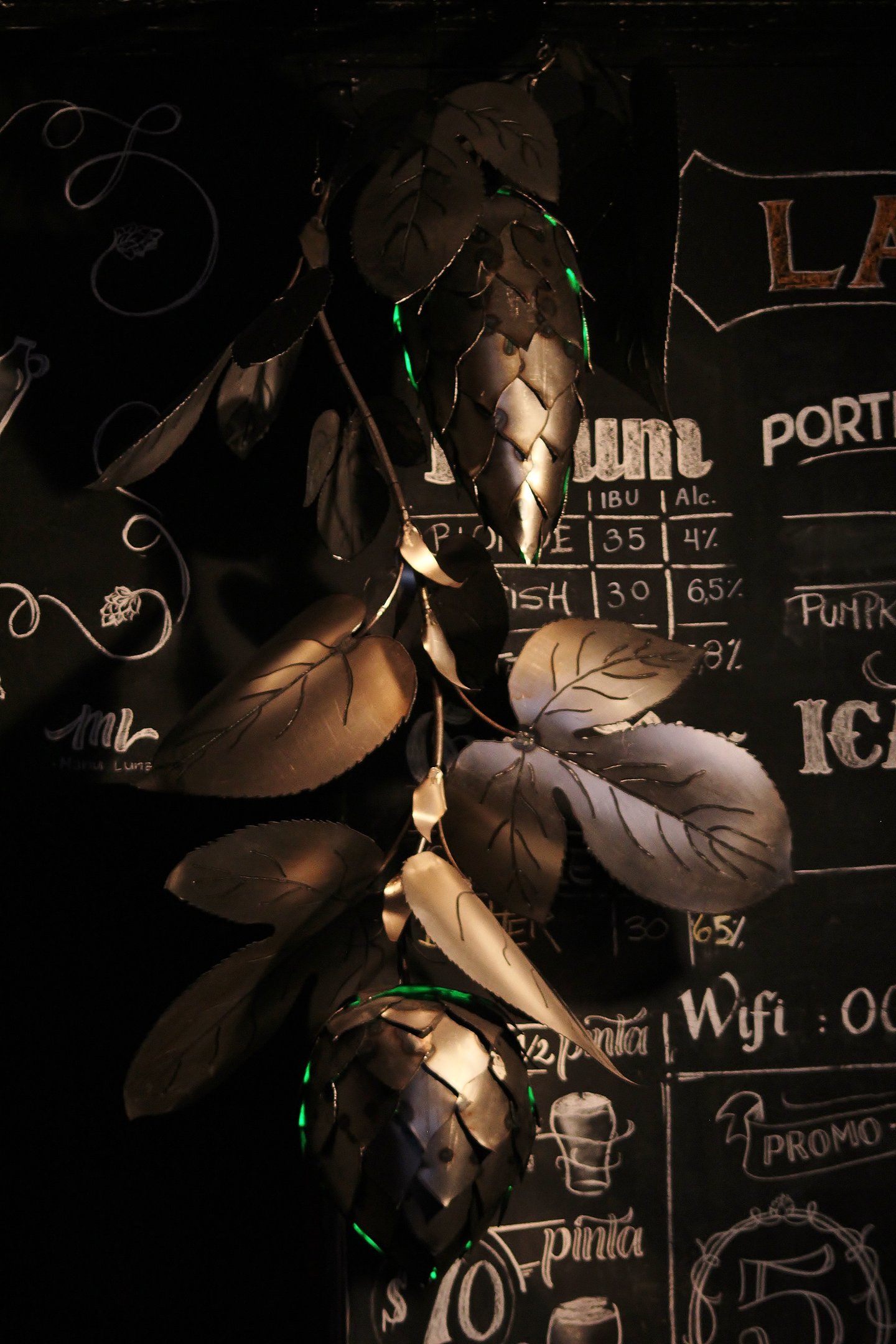 Obra de 2,5 m de altura realizada en hierro, mediante la técnica de calado y moldeado, con detalles y diseños originales. Lúpulo es un trabajo artístico que busca homenajear al mundo natural y, a su vez, promover conciencia sobre su sobreexplotación.