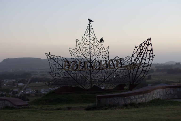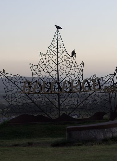 Trabajo realizado en hierro, mediante la técnica de calado. La obra pone de relieve tres manifestaciones que configuran la naturaleza del entorno: la ciudad, el campo y las sierras, representadas a través de diferentes especies vegetales autóctonas.